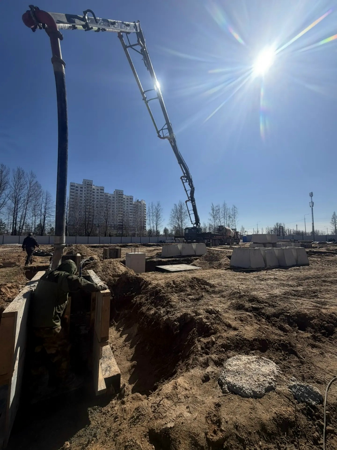 Продолжаем поставки бетона для заливки монолитного фундамента под колонны на улице Магистральной.