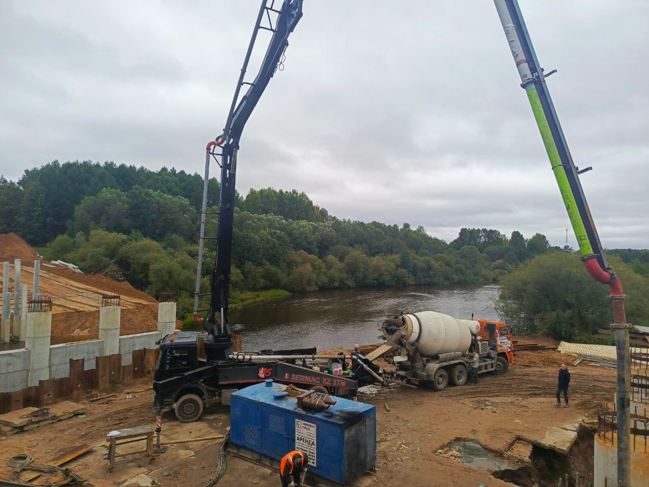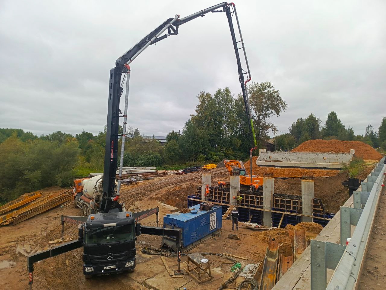 Главное условие успешной стройки — своевременная доставка стройматериалов. Мы обеспечиваем бесперебойный подвоз бетона для заливки мостовых опор. Работы впереди ещё немало!