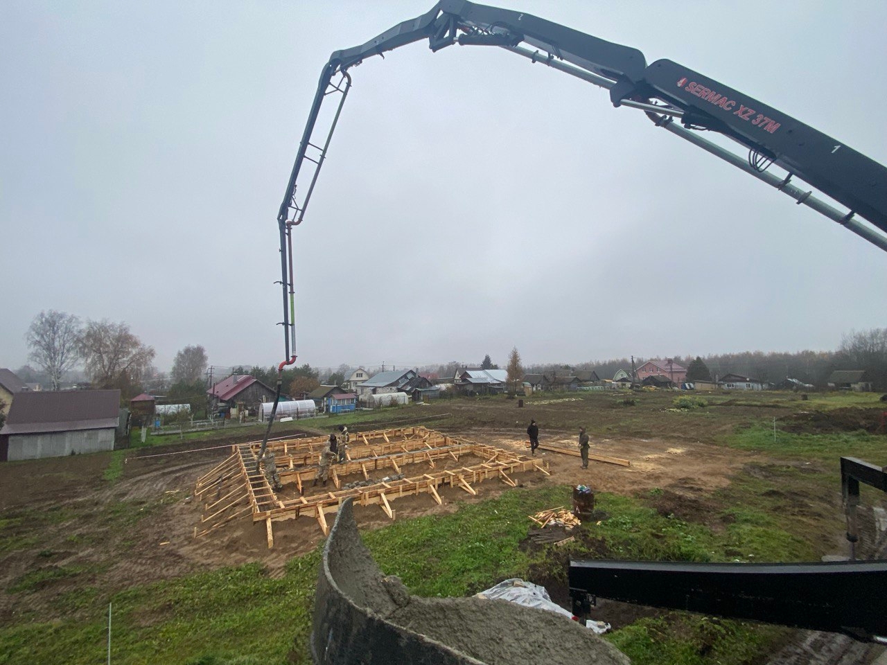 Еще одна заливка, только теперь мы отработали в деревне Глазово. В этот раз объектом заливки был ленточный фундамент будущего частного дома!