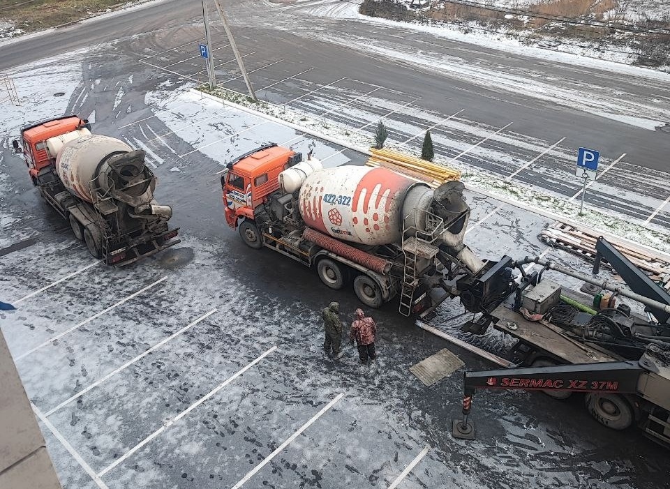 Сегодня на одном из объектов в Костроме мы доставили мелкозернистый бетон для заливки мокрой стяжки пола марки М200. Всего ушло на заливку пола 40 м³.