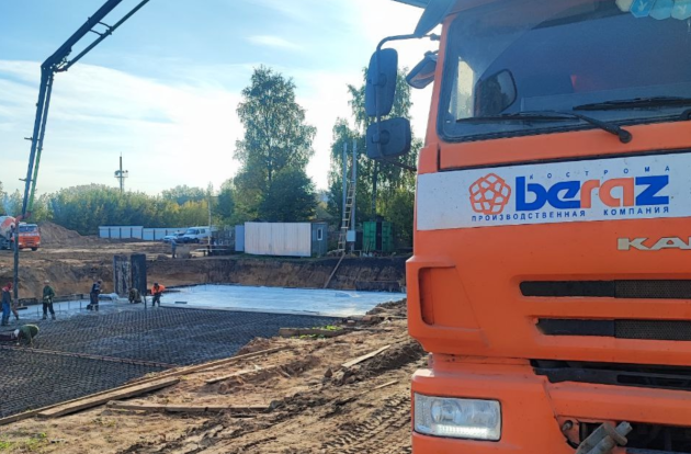 Наш следующий объект — строящийся торговый центр в Костроме. Была осуществлена поставка бетона для бетонирования межэтажных перекрытий строящегося комплекса. Всего было использовано около 50 кубометров бетона марки В25 W6 F150.