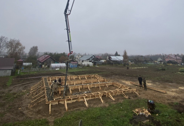 Еще одна заливка, только теперь мы отработали в деревне Глазово. В этот раз объектом заливки был ленточный фундамент будущего частного дома!